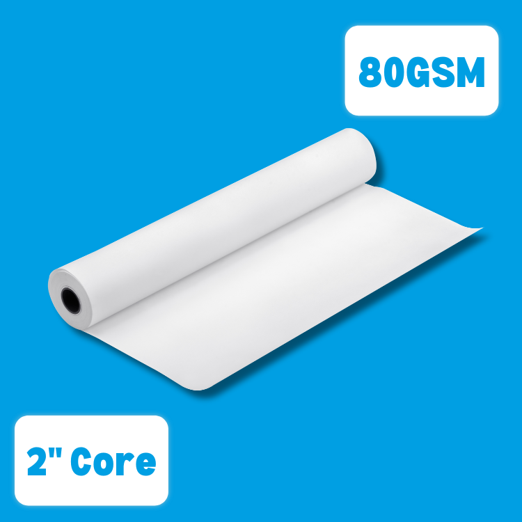 80gsm Uncoated Plotter Paper Rolls (50mm Core) Various Sizes